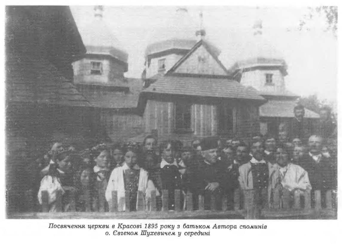 “На виставці в етнографічному відділі також була гуцульська церква. По виставці мій батько закупив цю церковцю з церковних фондів і поставив її в Красові, де вона й стоїть донині”.