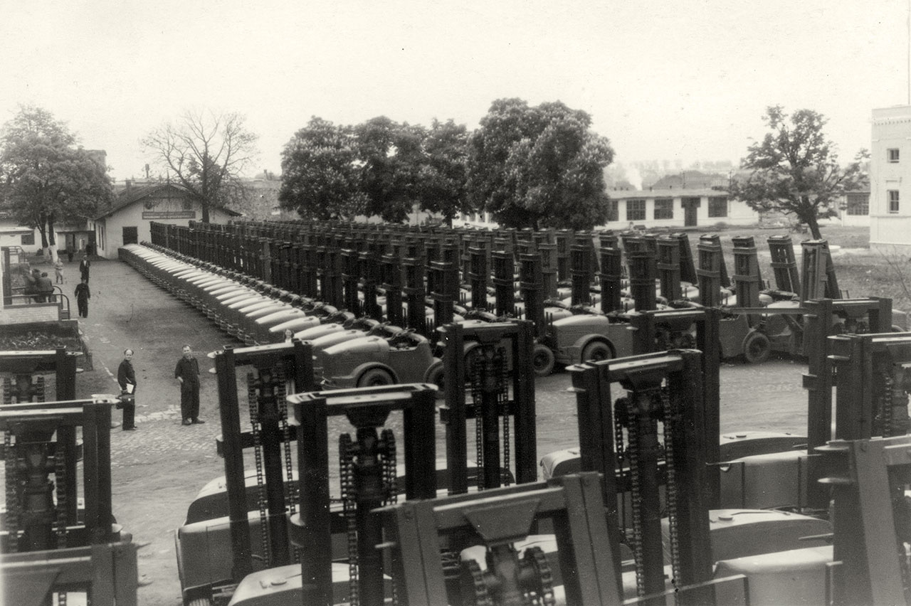 17 000 квадратних метрів території, головна будівля, що залишилась від казарм, декілька виробничих і допоміжних приміщень і стаєнь та всього лиш 135 одиниць обладнання. Це все, що було на початок 1948 року, коли прибули перші спеціалісти з метою створити завод і у січні 1949 року випустити перші серійні навантажувачі.