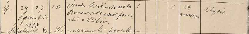 Скупий запис з книги реєстрації померлих дещо прояснив ситуацію: «Maria Rozlucka nata Baranowska uxor parochi Hlibov» (Марія Розлуцька уроджена Барановська дружина пароха Глібова). Померла вона на 29 році життя від туберкульозу 24 вересня 1898 року в будинку №26. За три дні 27 вересня її поховали. Чин похорону здійснив місцевий священник о. Григорій Комарянський.