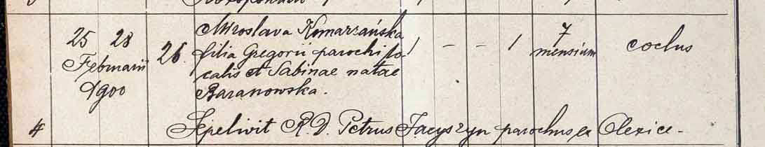 29 травня 1898 року народився син Володимир. Хлопчику не судився довгий вік. Його поховали 27 червня 1899 року. 7 місяців прожила донька священника Мирослава Комарянська. Вона народилася 15 липня 1899, а померла 25 лютого 1900 року.