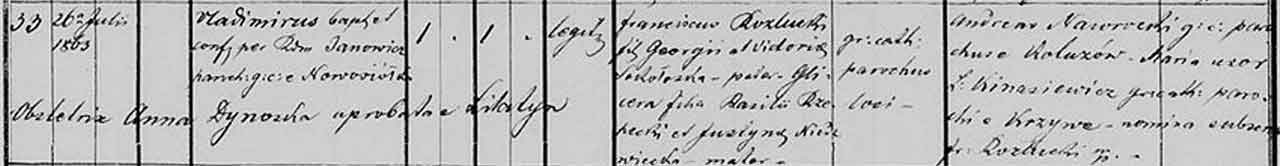 Саме на парафію тестя о. Дмитро Розлуцький призначений приватним сотрудником грамотою № 2536 від 16 квітня 1886 року. 2 вересня 1892 року став парохом. У Жовчеві він і помер 1914 року. Єдиний син Лесь де Новіна Розлуцький (1889-1920) – підхорунжий УСС, театральний і громадський діяч, актор, режисер, літописець Легіону УСС.