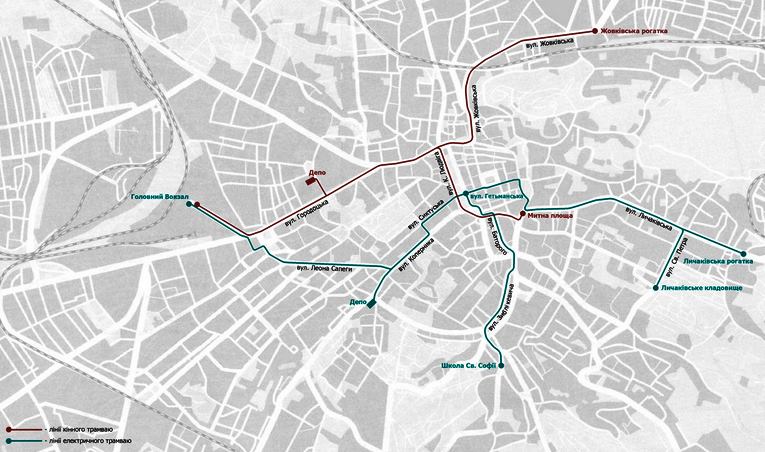 Надалі електричний трамвай курсував з головного вокзалу на вул. Личаківську (церква св. Петра і Павла), пізніше маршрут дещо продовжили. Інший маршрут пролягав від вул. Гетьманської до Софіївки.