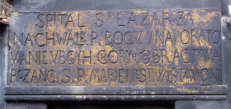 Комплекс шпиталю Св. Лазаря. 1634 року Прихильний розпочав будівництво мурованого костелу за власним проектом. Застосовано камінь із гори Шембека, що знаходилась поблизу. 1638 року за наказом короля Владислава IV за шпиталем розпочато будівництво укріплень за проектом Фридерика Ґетканта. Єдиною оборонною лінією планувалось охопити усі передмістя Львова. Укріплення однак недобудовано і через кілька десятиліть Ян Томаш Юзефович констатував, що в районі шпиталю від них не залишилось сліду. Храм освячено 16 жовтня 1639 року ще на стадії будівництва. Амвросій Прихильний помер 1640 (1641?) року і був похований у криптах костелу. Завершення шпиталю він доручив будівничому Мартину Годному і заповів для цього усе своє майно. Дві вежі костелу ймовірно добудовані Годним.