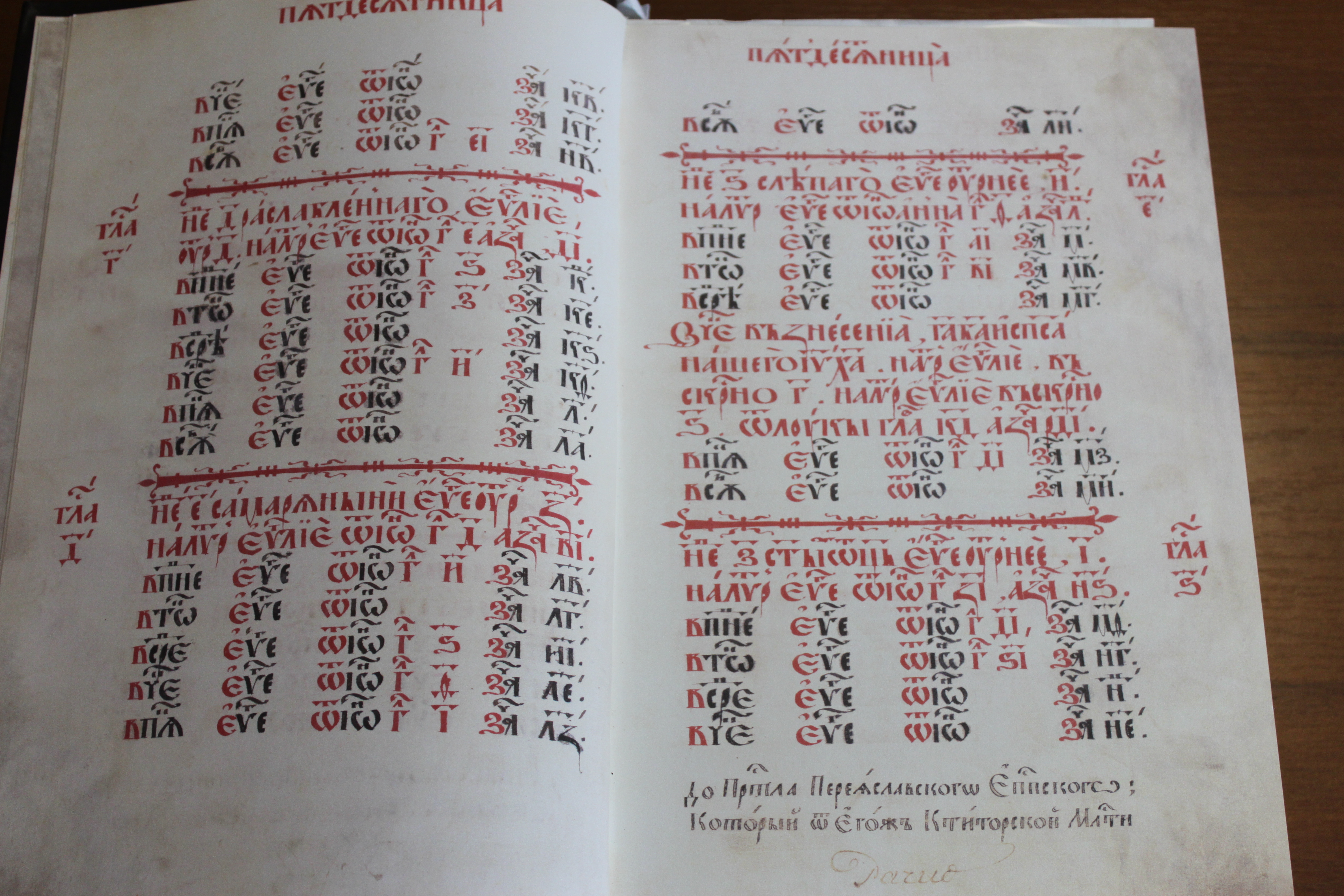 Пересопницьке Євангеліє більшість українців знає за тим, що саме на цій пам’ятці (поруч з Конституцією України та Актом проголошення незалежності України), приступаючи до виконання своїх обов’язків, присягає Президент. Але значення книги насправді є значно вищим і більш символічним. Цим рукописом з унікальними мініатюрами, було започатковано традицію українських перекладів канонічного тексту Четвероєвагнелія. Роботу над цією пам’яткою розпочали 1556 року у Дворецькому монастирі при церкві Святої Трійці (сьогодні Хмельницька область), а завершили 1561 року у Пересопницькому монастирі при церкві Різдва Богородиці (Рівненська область). Євангеліє було написане на пергаменті староукраїнською писемною мовою з церковнословянської болгарської редакції.