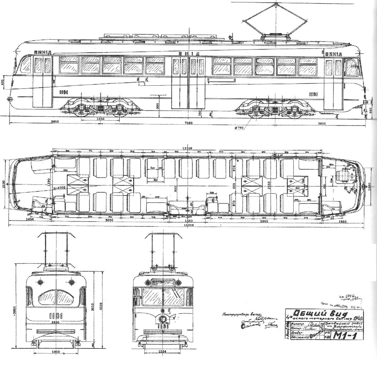 На початку 1940-х років КЗЕТ розробив конструкцію чотирьохвісного цільнометалевого трамвайного вагона М1 (КТЦ – київський трамвай цільнометалевий). У виробництві трамвайних кузовів використовувалося електродугове зварювання по способу Є. Патона. Електрообладнання для вагонів виготовлялося московським заводом «Динамо». У конструкції вагонів використовувалися візки Т8К-40.