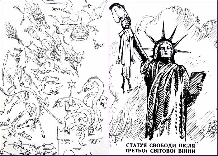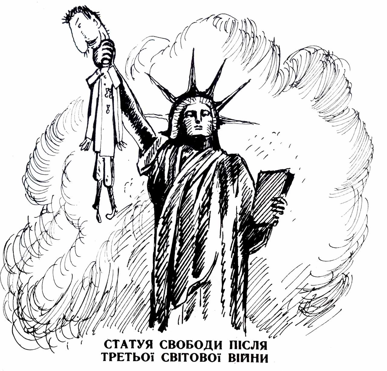 З високої трибуни учасники сходки з характерною для лідерів пролетаріату та рядових голодранців «злісною слюною» звинувачували «колективний Захід» у тому, що їм там добре живеться. При цьому дехто з виступаючих лякав вільний від московських нечистот світ третьою світовою війною. Одне з популярних сатирично-гумористичних видань помістило візуалізацію того, що чекає «диктатора і вождя» після уявної глобальної катастрофи (див. ілюстрацію № 3).