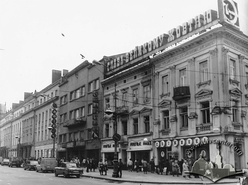 Кінотеатр «Україна» на площі Галицькій 15/проспекті Шевченка, 1 був найбільшим та найпрестижнішим у Львові до початку 1960-х років. Кінозаклад вміщував 704 глядацьких місця, у фойе перед початком сеансів грав оркестр, працював буфет.