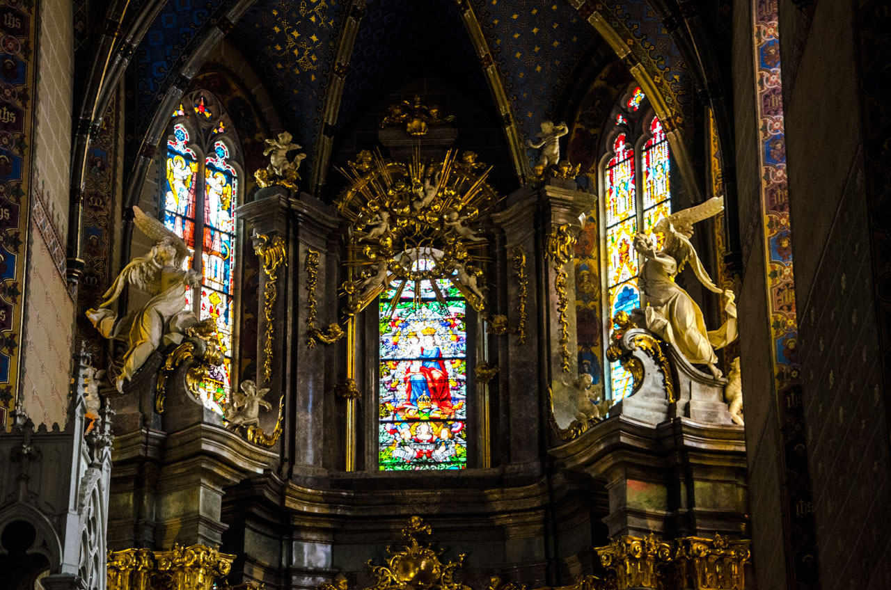 Серед пам’яток готичної архітектури лише Латинський собор зберіг неушкодженою свою вітражну оздобу. Вирізняється він тим, що вітражі утворюють ансамбль. Особливістю є композиційна схема сюжетних вітражних полотен. Композиційно-пластичне вирішення вдало підтримує колір, завдяки якому композиція кожного вітражу отримує необхідне внутрішнє наповнення.