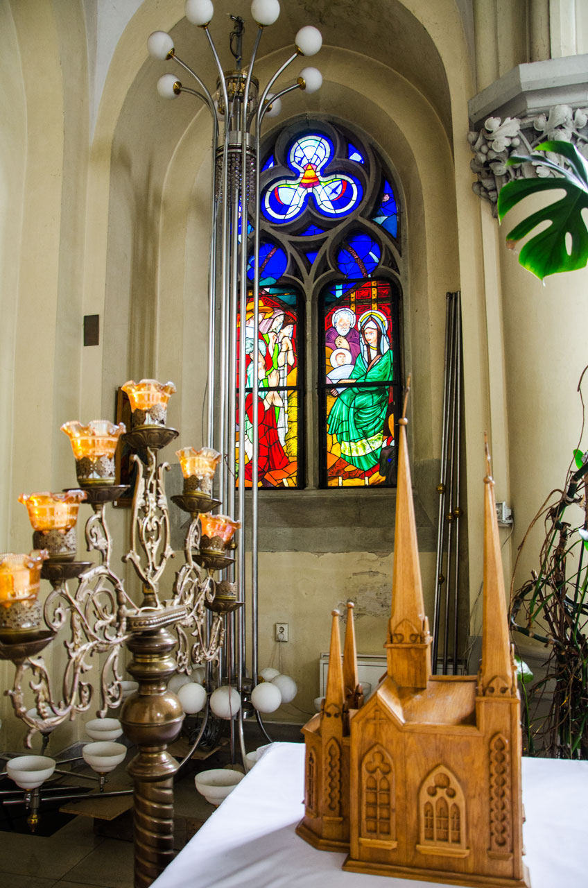 П. Наталю. Ви помиляєтесь стосовно вітражів у церкві Ольги та Єлизавети. ці що на фото — нові. навіть дуже нові 🙂 вони минулорічні 🙂 а старі, ті що виготовлені були закладом С.Г.Желенського постали у міжвоєнний період і були знищені відразу за кілька років. є фото та доволі інформації. Шукайте та виправляйте 🙂 не знайдете — звертайтесь підкажу де шукати 🙂