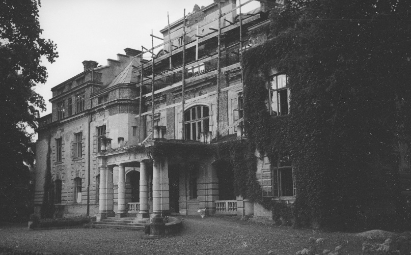 Коли у 1904 році згорів старий палац, власник Журавно Антоній Скшинський збудував за сотню метрів новий палац у стилі неоренесансу з елементами ампіру і сецесії, спроектований львівським архітектором, професором Владиславом Садловським. Його фасад прикрасила ліпнина: алегорії на військову тематику, маскарони лицарів, гербові картуші тощо. У 1930-х роках палац реставрували його останні власники, подружжя Гелени Скшинської і Казимира Чорторийського, дещо розширивши його. Найгарніший вид на палац був з боку великого саду, що й зараз оточує споруду. З цього боку фасад був підкреслений двома ризалітами неоднакової ширини з відкритою терасою між ними.