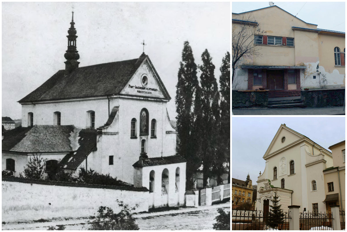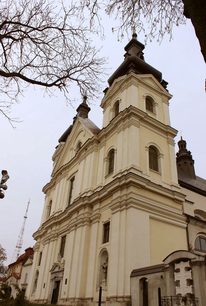 Костел, розташований на вулиці Короленка (колишній Францисканській), збудований коштом Єлизавети Софії Сенявської (дружини краківського каштеляна Адама Сенявського). 1708 р. вона викупила ділянку за монастирем кармелітів босих і заснувала тут монастир капуцинів, будівництво якого завершилося 1730 р. Близьке сусідство спричинило конфлікт між двома монастирями, який цікаво описує Іван Крип’якевич.