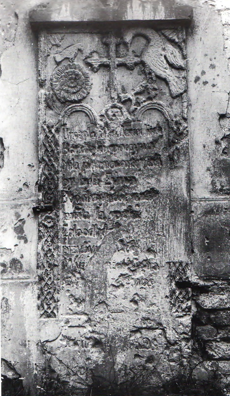 Зовні вівтарної стіни збереглася кам’яна плита, датована 26.ХІ.1820 роком. Збереглися також віконні просвіти в стінах, двері та хрест над входом, а ще де-не-де в інтер’єрі фрагменти розписів.