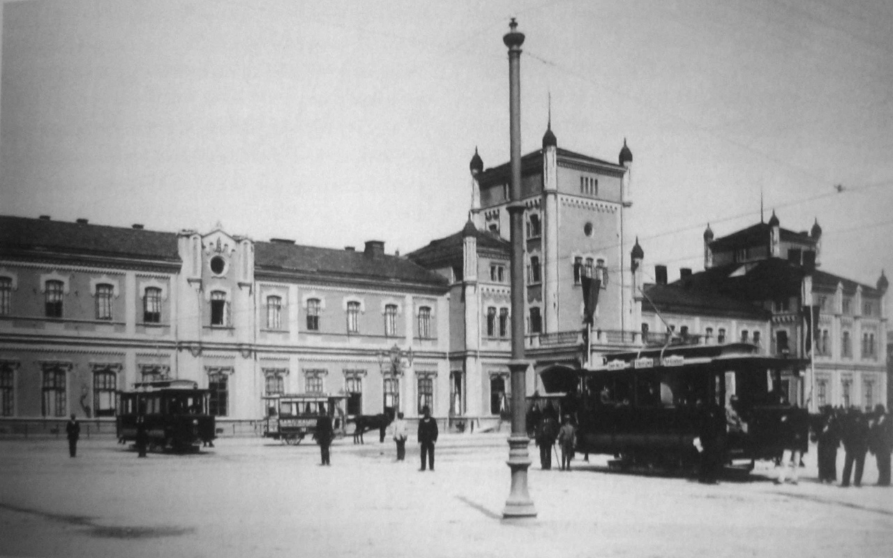 31 травня 1894 року трамвайний рух відкрився на трамвайній лінії від залізничного вокзалу до школи Св. Софії (район польського консульства). 5 червня 1894 року, в день відкриття Галицької виставки крайової, було відкрито «виставкову» гілку, яка прямувала до воріт виставкової площі (верхня частина Стрийського парку) сучасними вулицями Понінського (верхня частина сучасної вул. Івана Франка) та Рацлавицькою (нині – Уласа Самчука). Вагони курсували «виставковою гілкою» до жовтня 1894 року, тобто до закриття Галицької виставки крайової. Після цього, відповідно до контракту, «виставкову» гілку розібрали, а рейки та елементи контактної мережі використали для будівництва трамвайних ліній на Верхньому Личакові.