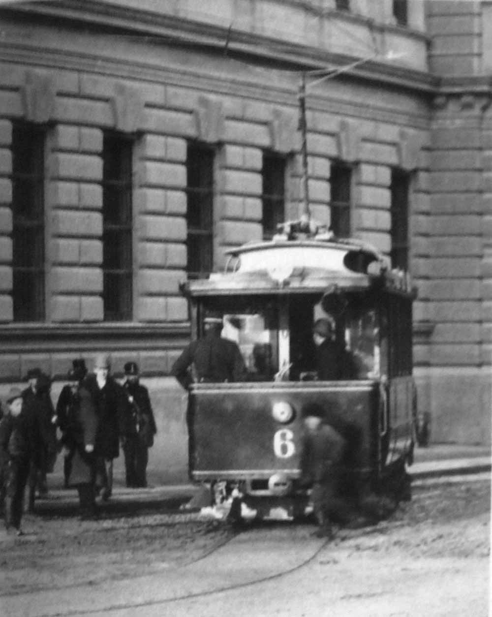 Перша лінія електричного трамвая у Львові почала перевозити пасажирів 31 травня 1894 року. Вона поєднала залізничний вокзал залізниці ім. Карла Людвіга і школу Св. Софії (район польського консульства). Не усі знають, що у 1894 – 1908 рр. колії електричного трамвая проходили по центру вулиці Дрога до дворца (нині – Чернівецька) і виходили на вулицю Лєона Сапєги (Степана Бандери) не через вулицю Городоцьку, а вулицями Дзялинських (Тобілевича) та Шептицьких (Федьковича). Така траса колій електричного трамвая була обрана для того, щоб уникнути перетину із коліями кінного трамвая. Під час будівництва лінії електричного трамвая у 1893 – 1894 рр. колії кінного трамвая були перенесені на виокремлене полотно (туди, де зараз колії трамвая електричного). До того, у 1880 – 1893 рр. колії кінного трамвая проходили по центру сучасної вулиці Чернівецької.