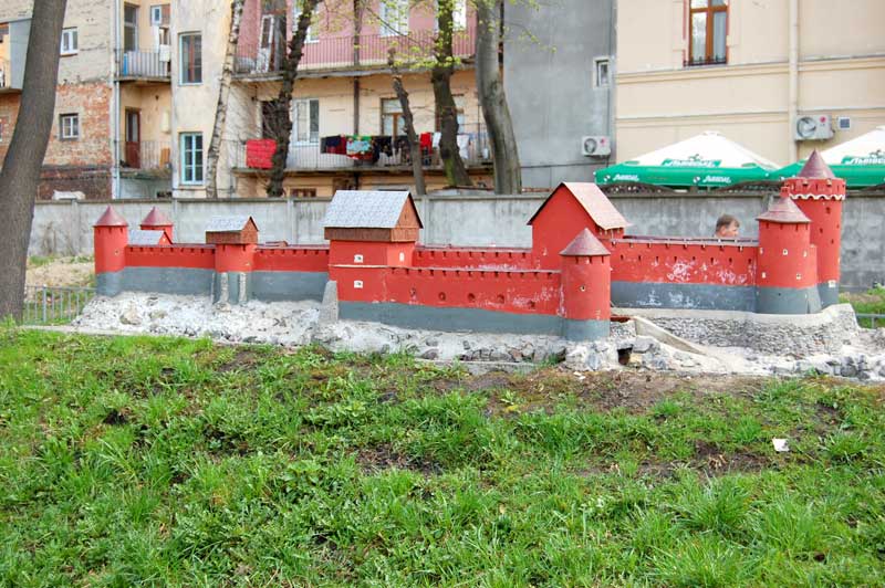 І не тільки замок Тамплієрів, а я ще багато історичних замкових споруд і комплексів можна зустріти завітавши в кінець подвір’я палацу Потоцьких у Львові. В цьому маленькому парку мініатюр на 50 квадратних метрах можна побачити половину давньої України.