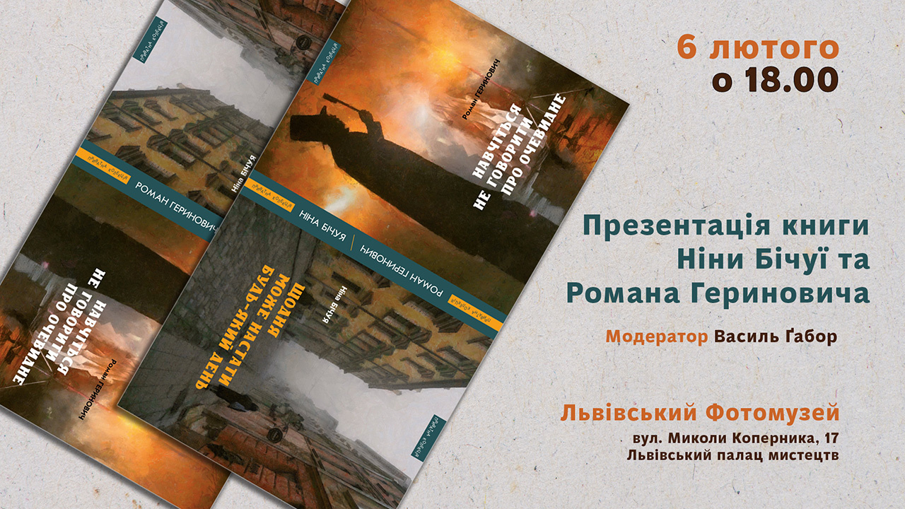 В четвер, 6 лютого 2025 року о 18.00, у Львівському Фотомузеї (Львівський палац мистецтв, вул. Коперника, 17) відбудеться презентація нової книги письменниці Ніни Бічуї, яку Валерій Шевчук назвав королевої «жіночої» прози 60-х років ХХ ст., та її сина – Романа Гериновича, талановитого поета і фотохудожника. Ця книга-перекрутка вийшла в серії «Талановиті родини Львова».