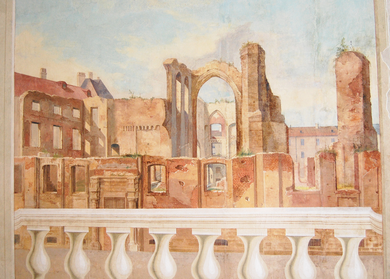 Андрій Бокотей, кандидат біологічних наук, старший науковий співробітник, завідувач відділу біотичного та ландшафтного різноманіття, розповів “Фотографіям старого Львова“, що оскільки зображені на фресці руїни уже поросли травою, а костел був розбомблений австрійськими урядовими військами у 1848 році під час революції, фреска датується 1850-1852 роками. Її творець міг бачити руїни, дивлячись у вікно, оскільки костел знаходився навпроти сучасного музею на Театральній.