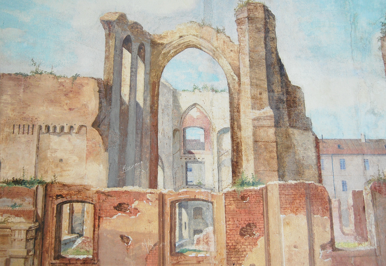Унікальну фреску знайшли на стіні Державного природознавчого музею НАН України, коли демонтували стару експозицію. На ній зображені руїни монастиря францисканців.