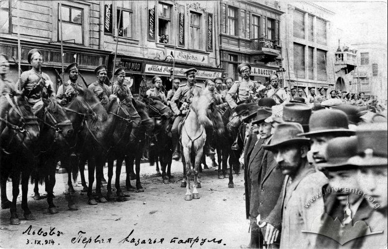 З його похмурого обличчя я зрозумів, що це сумна правда. За п’ятнадцять хвилин я вже був на вулиці, де побачив кінних російських вояків. Одні стояли, инші рухалися, мали різні мундири, але при боці неодмінно був скіпетр культури – нагайка.