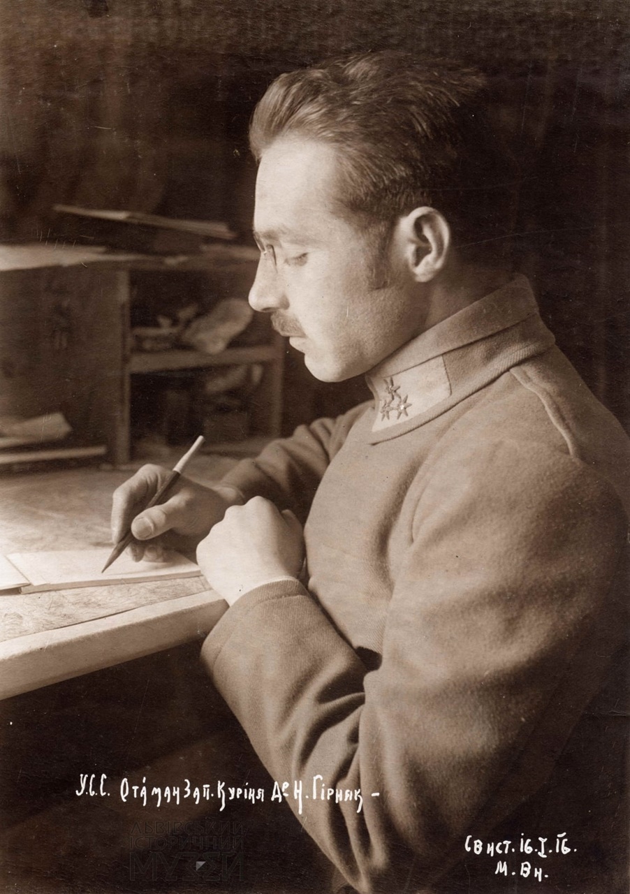 Никифор Гірняк – український військовий і освітній діяч, майор УСС,доктор філософії. Впродовж 1915–1918 рр. займав посаду команданта Коша УСС (українська запасова частина, що була створена у 1915 році для поповнення особового складу Легіону УСС), мав звання отамана. Активний учасник Листопадового повстання та Українсько-польської війни 1918—1919 рр.
