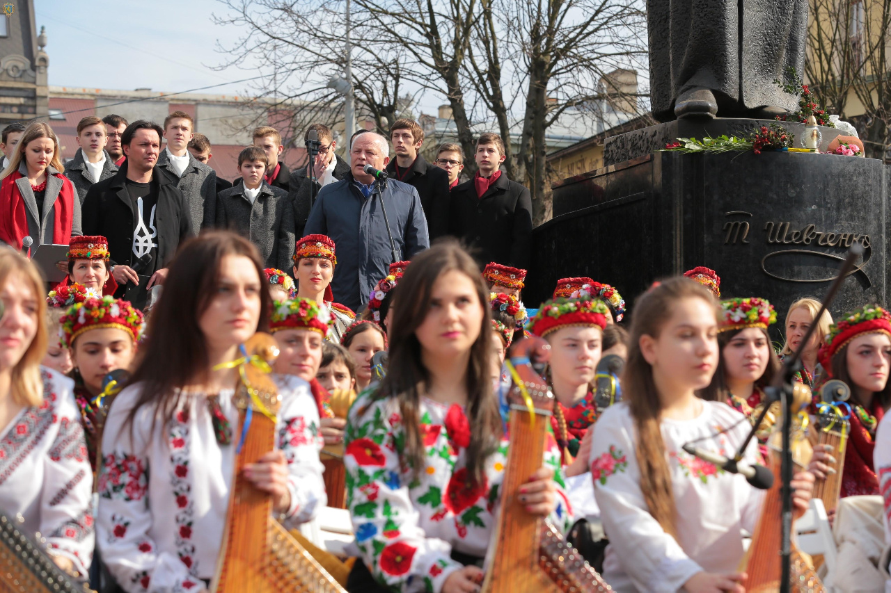 “Тарас Шевченко – людина, яка зуміла передбачити своїм пророцтвом велику Україну, національну ідею і зберегти національну ідентичність. Коли ми говоримо про Тараса Шевченка, то згадуємо його Кобзар, українську бандуру і говоримо про символ життя нескорених бандуристів. Людей, які поклавши своє життя, гідно пронесли людяність, збереження цінностей Бог та Україна. Українці у світі дякують Богу за державність, яка була відтворена Шевченком. Вивчаючи його щоденно, кожен розуміє глибину пізнання пророка, гідної людини, яка жила з цінностями і боролась за Україну. Дивлячись сьогодні на бандуристів, хочу подякувати за приклад єдності тої пісні, яка завжди є символом перемоги і нових звершень. На Сході ми бачимо героїв, які дають нам можливість жити звичним життям. Ми маємо сильну українську армію, яка була створена і Президентом України, і Верховною Радою та Урядом. Відкриваючи Кобзар на будь-якій сторінці, ми знаходимо гідне проповідництво нашої сильної України”, – зазначив Степан Кубів.