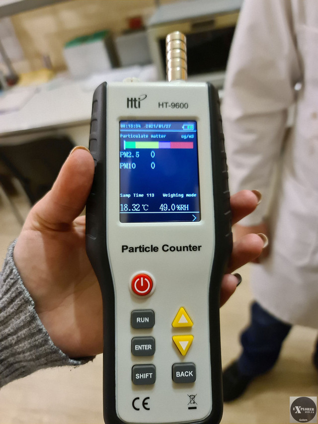 Лабораторія має спеціальний прилад для контролю кількості мікрочастинок в повітрі. Мікрочастинки продукуються здебільшого автомобілями. Ці частинки настільки малі, що вони не фільтруються легенями і тому напряму проникають у крові. А з ними і канцерогени та важкі метали. Мікрочастинки невидимі, але в рази небезпечніші за сіру пилюку та чорний дим.