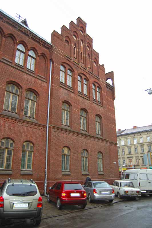 Мабуть такі картини в дитячій уяві з’являлися завдяки незвичності архітектури будівлі та матеріалу. Адже, виконана з червоної цегли без додаткової орнаментальної оздоби, ця будівля вирізняється на фон більшості споруд у Львові.