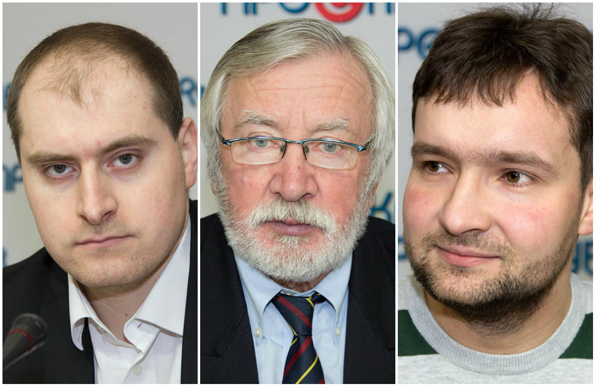 Учасники прес-конференції (зліва направо): голова Львівської обласної організації Національної спілки художників України Олег Микита, координатор ГО «Гармонія та порядок» Дмитро Гудима, начальник відділу правової та кадрової роботи Львівської обласної ради Андрій Мельник та модератор, керівник медіапроектів Львівського прес-клубу, Роман Шостак