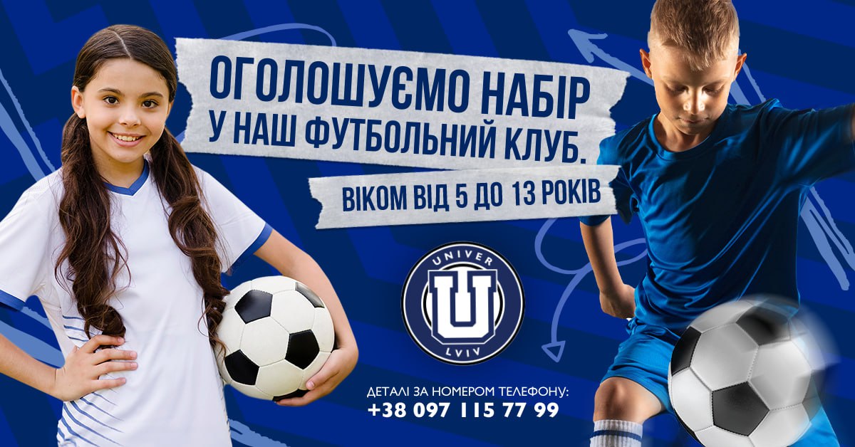 Львівський футбольний клуб FC Univer запрошує хлопців та дівчат віком від 5 до 13 років, для занять футболом. Заняття відбуватимуться тричі на тиждень у спорткомплексі Львівського національного університету за адресою вул. Черемшини, 31. Крім того, до кінця 2023 року заняття у школі безкоштовні.