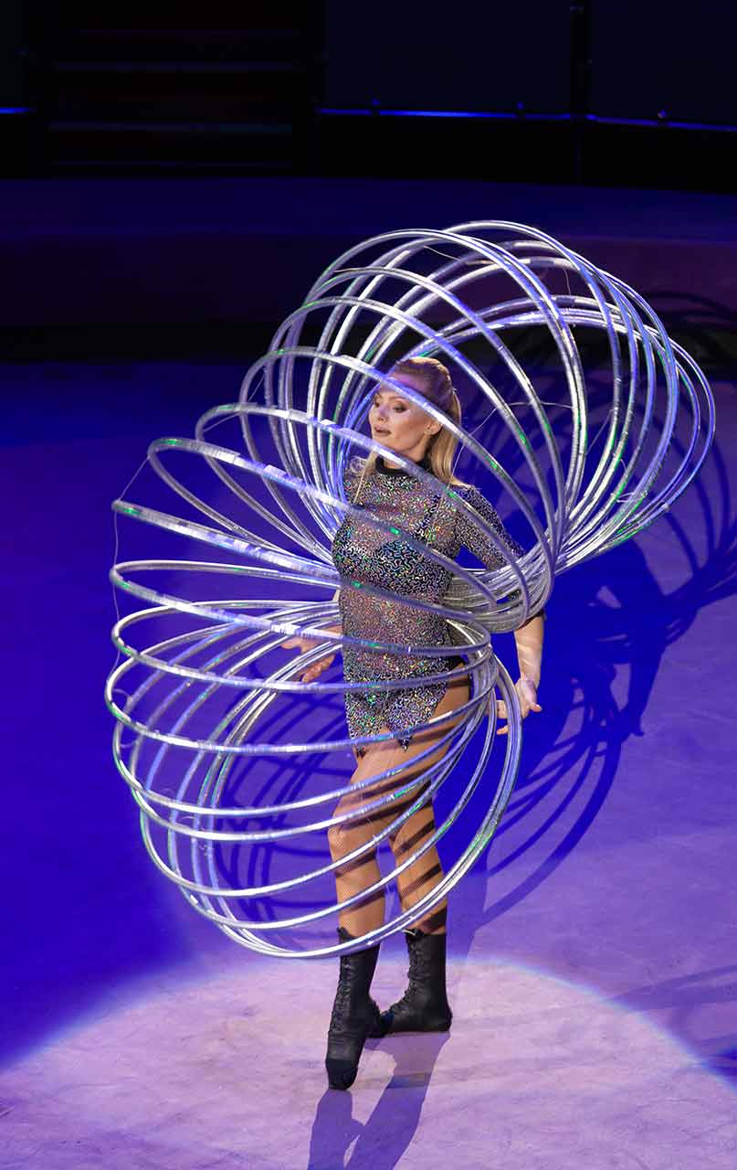 Далі розпочинається гра з хула-хупами артистки Тетяни Чернової. Завдяки майстерності артистки, хула-хупи стають магічними обручами, які летять навколо неї у ритмі музики, залишаючи за собою світлові лінії і вражаючи глядачів витонченим виступом.