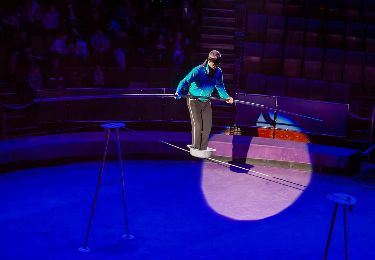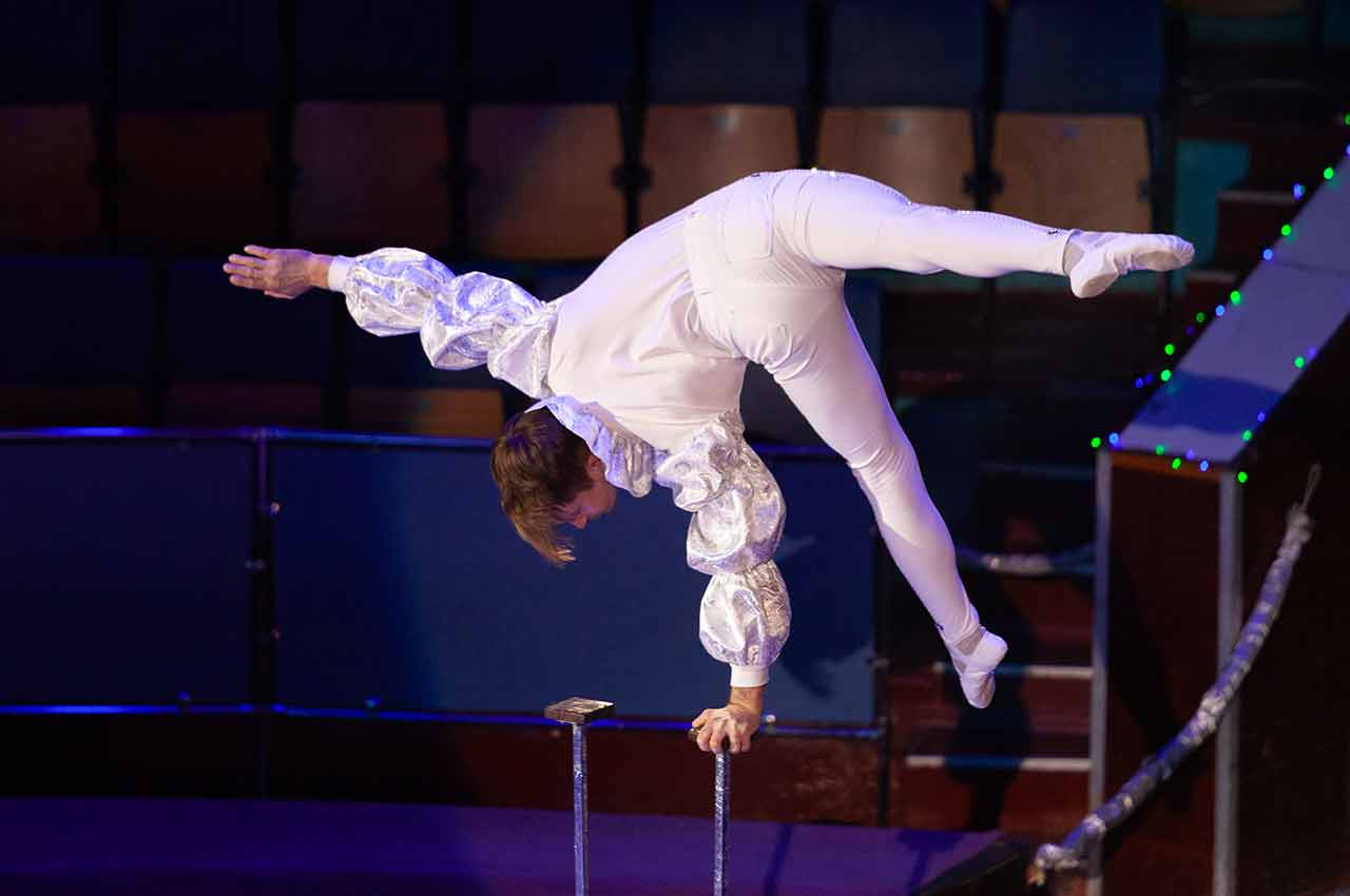 Віталій Кримський, видатний гімнаст на корд-де-волані, дарує глядачам захоплюючий цирковий виступ, який вражає своєю елегантністю та винятковою технікою. Виступ Віталія Кримського – це справжнє мистецтво, яке залишає глядачів у захваті від його надзвичайного таланту та вражаючого виступу.