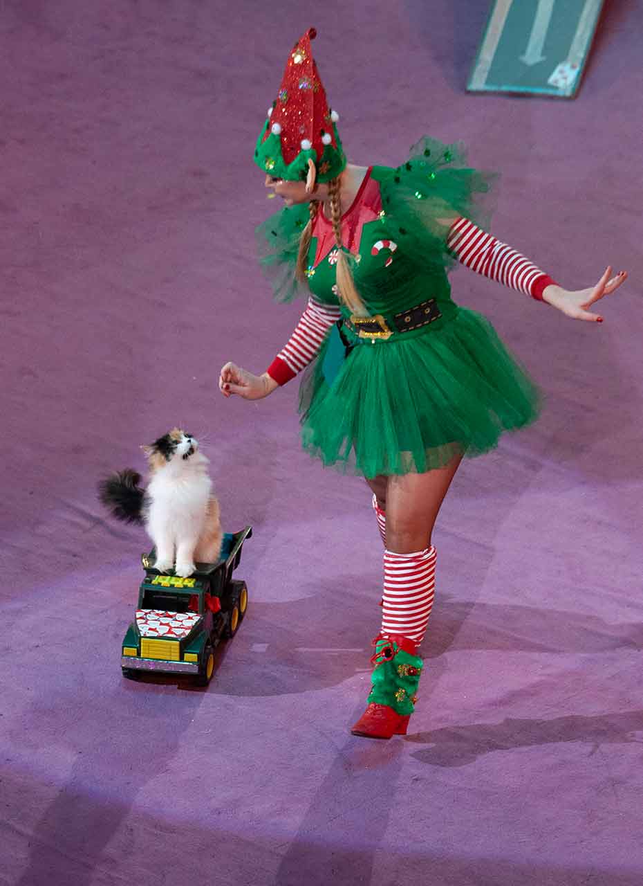 І великих малих глядачів підкорила своїми котиками Анжела Тонкопій. Артистка майстерно взаємодіє зі своїми пухнастими підопічними, навчаючи їх веселим трюкам та комічним виступам. Кожен котик виконує свою унікальну роль, створюючи неперевершену атмосферу радості та сміху серед глядачів. Цей номер не лише демонструє дотепну дресуру, але і надихає публіку своєю чарівністю та гумором.