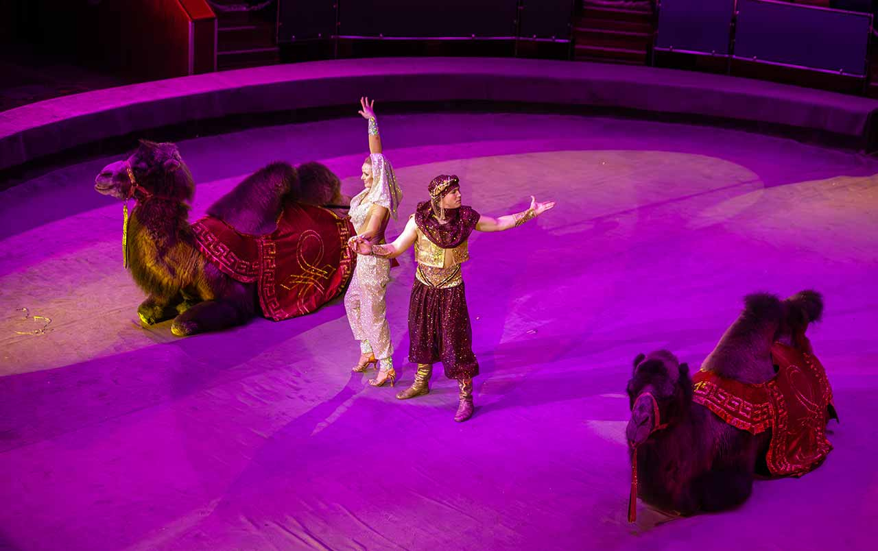 Цирковий виступ з дресованими верблюдами під керівництвом Тетяни Чернової та Богдана Ріхарда — це захоплююче поєднання витончених трюків та взаємодії між артистами та тваринами. Тетяна і Богдан, завдяки своєму професійному підходу, вдало втілюють в життя неймовірні номери, де верблюди виконують складні команди та вражають глядачів своєю слухняністю та грацією. Це виступ, наповнений радістю та позитивною енергією, який не лише демонструє високий рівень мистецтва дресури, а й залишає невимовно яскраві враження у серцях глядачів.