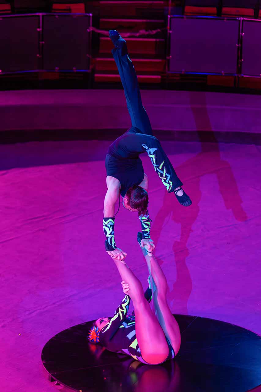 Виступ акробатичної пари артистів Віталія Кримського та Катерини Кримської — це захопливе поєднання сили, гнучкості та грації. Віталій та Катерина виконують неймовірні трюки, демонструючи вражаючу синхронність та високий рівень взаєморозуміння. Цей виступ наповнений енергією та емоціями, залишаючи глядачів зачарованими та враженими високим мистецтвом цієї талановитої акробатичної пари.