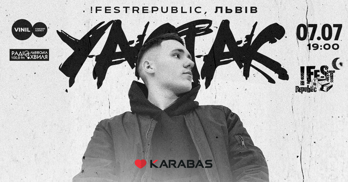 Його голос закохує з перших нот, а його пісні залишаються в серці вже після першого прослуховування. У неділю, 7 липня, у Львові на !FESTrepublic (вул. Старознесенська, 24-26) із великим літнім концертом виступить талановитий та харизматичний YAKTAK. Початок концерту о 19:00.