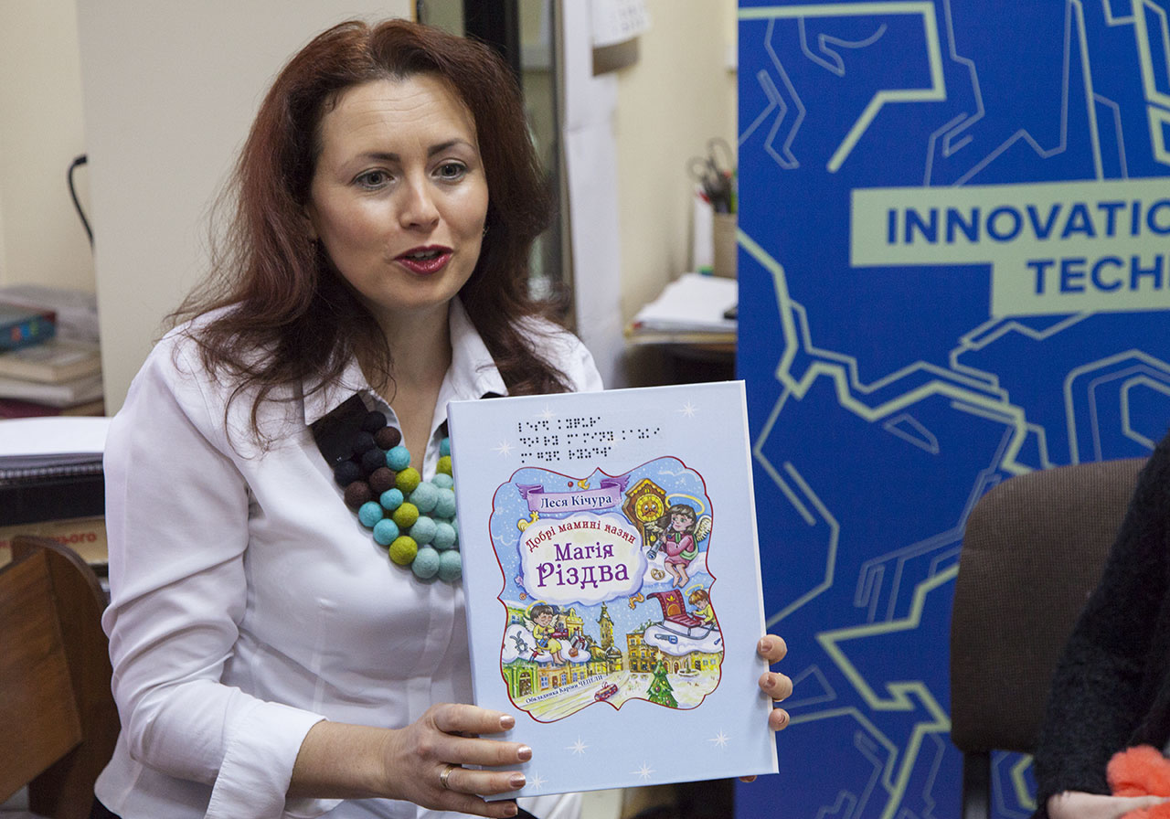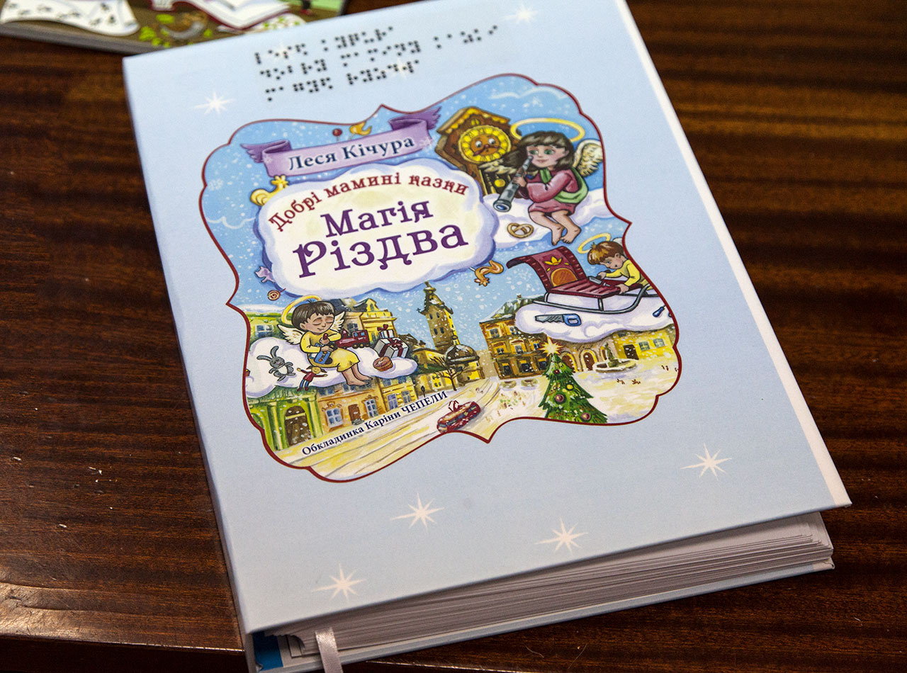 Як розповіла керівник Ресурсного центру НУ «Львівська політехніка» Оксана Потимко, першим промінчиком нового дизайну книг для незрячих дітей став літературний твір відомої львівської письменниці Лесі Кічури «Добрі мамині казки. Магія Різдва».