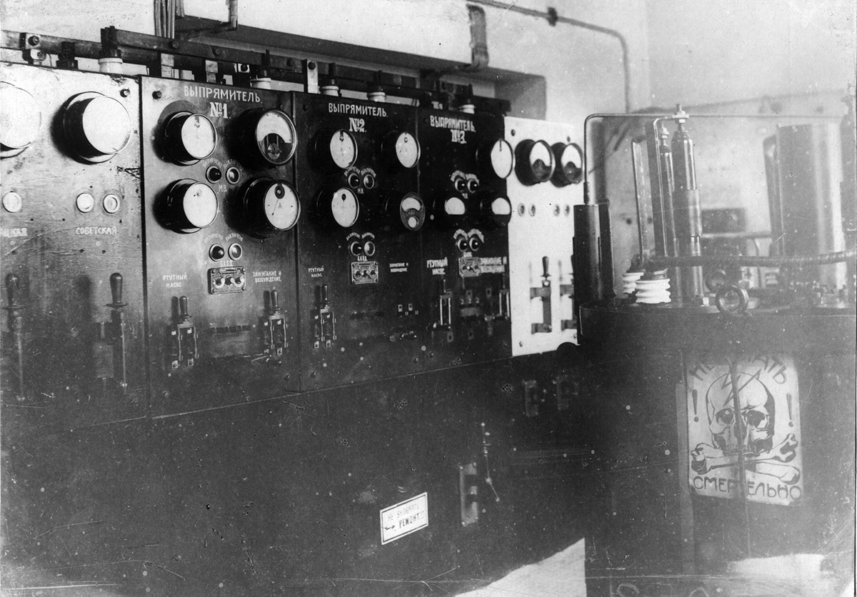 На початку 1920-х років обладнання тягової підстанції трамвая було достатньо примітивним: для перетворення змінного струму в постійний використовувалися обертові електромашинні перетворювачі (умформери): змінний трифазний струм подавався на потужний асинхронний електродвигун, який в свою чергу обертав якір генератора постійного струму. Умформери були важкими, громіздкими і мали відносно малий коефіцієнт корисної дії. Для захисту від перевантаження по струму на той час використовували плавкі запобіжники. Високовольні рубильники вмикали і вимикали вручну. Відповідно для обслуговування підстанції потрібно було багато обслуговуючого персоналу.