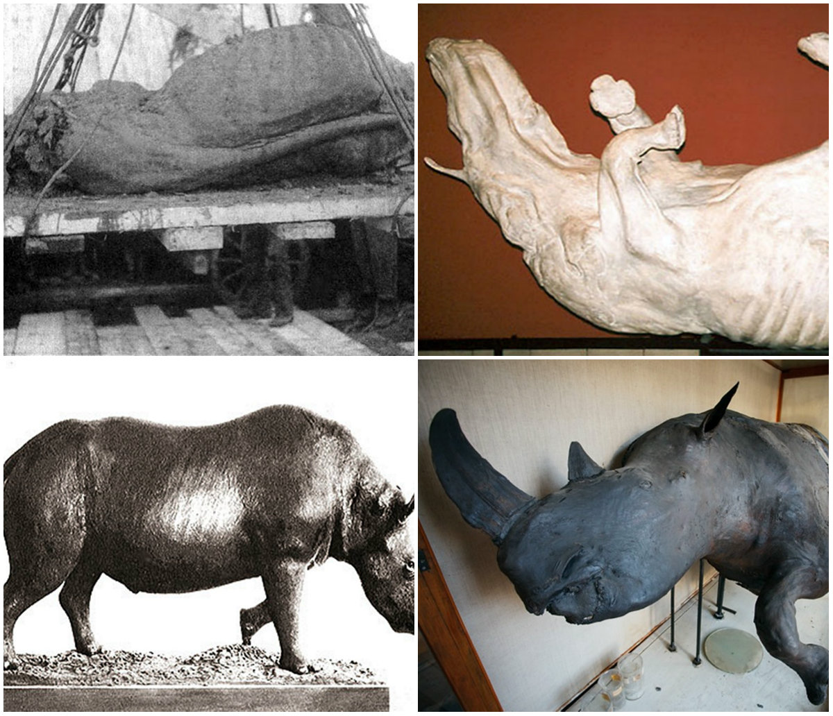 «Довжина голови носорога, покритої м’якою шкірою, становить близько 80 сантиметрів, висота – 40 см, ширина – 25 см. По боках голови видно сліди, де були очі, трохи вище від них містилися маленькі м’які вуха. Біля голови знайдено тільки один ріг довжино 35 сантиметрів, хоча при детальному огляді виявлено, що викопний звір належав до дворогих носорогів, на кості носової частини залишилося виразне місце від другого рога, який був більшим, ніж збережений. Найбільшу увагу привертала нога з копитом, яка була піднята так, ніби носоріг щойно ступав по землі, хоча він лежить в землі вже кілька тисяч років», – так описували другу знахідку Nowości Illustrowane.