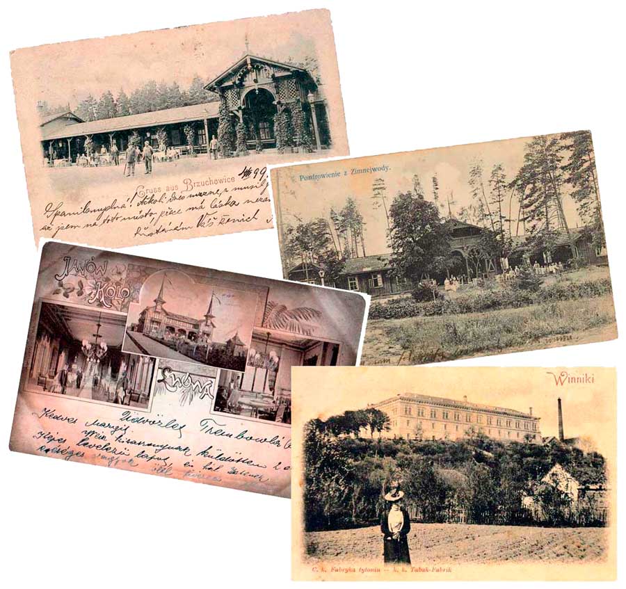А були ними: Брюховичі біля Львова, що лежать на лінії Львів-Жовква, Зимна Вода, розташована найближче до Львова (10 км) по дорозі на Перемишль і Краків, Янів [від 1946 року це місто тимчасово носить назву Івано-Франкове], який серед усіх тих місцевостей мені найбільше подобався через став з площею понад кілометр і човнами напрокат, і, нарешті, Винники на шосе до Перемишлян, яке бігло на схід від Львова через мальовничі горбисті і лісисті околиці, що належали до масиву Львівсько-Люблінського Розточчя, північна частина якого відома лише як Люблінське Розточчя. Ця місцевість була найгарнішою, але найбільш важкодоступною, оскільки залізниця тут була побудована набагато пізніше. Від личаківської рогатки [4] треба було починати піший марш, а місцеві гостинці [5], посипані вапняковим камінням, були найбільш запорошеними з усіх доріг навколо Львова. Дорожній пил був дрібним і білим, як борошно, дуже нездоровим для легень, ще й бруднив одяг. Тому ми уникали ходити по шосе в спекотну погоду, так само як і в сезон дощів, коли біле вапнякове болото нищило наше взуття.