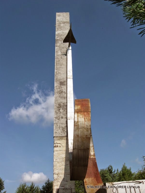 А в 1979 році було створено меморіальний комплекс, до складу якого входив музей пілота та 45-метрова стела, яку тепер і помітно з траси. Стелу хоч і збудували грандіозних розмірів, однак досить халатно. Вже досить скоро плитка, котрою її було обкладено, почала відпадати. Досить дивною була і сама композиція монументу. По-перше, кидається в очі реактивний літак, який був винайдений за кілька десятиліть після смерті Нестерова. По-друге, Нестеров хоч і прославився своєю петлею, однак на цьому місці він загинув, виконуючи не фігури вищого пілотажу, а повітряний таран.