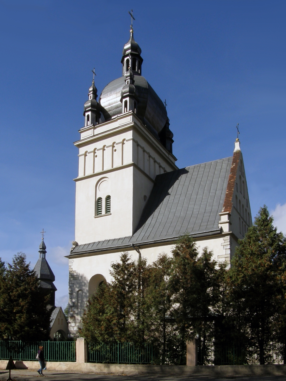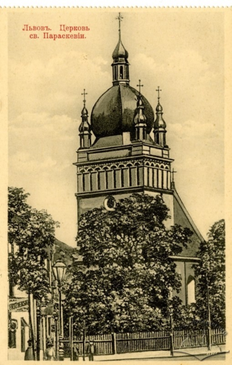 Майже в один час з костелом Кармелітів босих своїх метаморфоз зазнає й церква св. Параскеви, що відома також як П’ятницька церква. Зміна зовнішнього вигляду знову була пов’язана з вежею. Щоправда, добудовувати другу вежу до цього невеличкого, проте доволі давнього храму ніхто не став. Натомість, за проектом Міхала Лужецького була перебудована уже існуюча вежа. Замість шатрового завершення, котре можна спостерігати на фотографіях церкви кінця XIX – поч. XX ст., храм отримав струнку вежу із ліхтарем і наріжними вежечками.