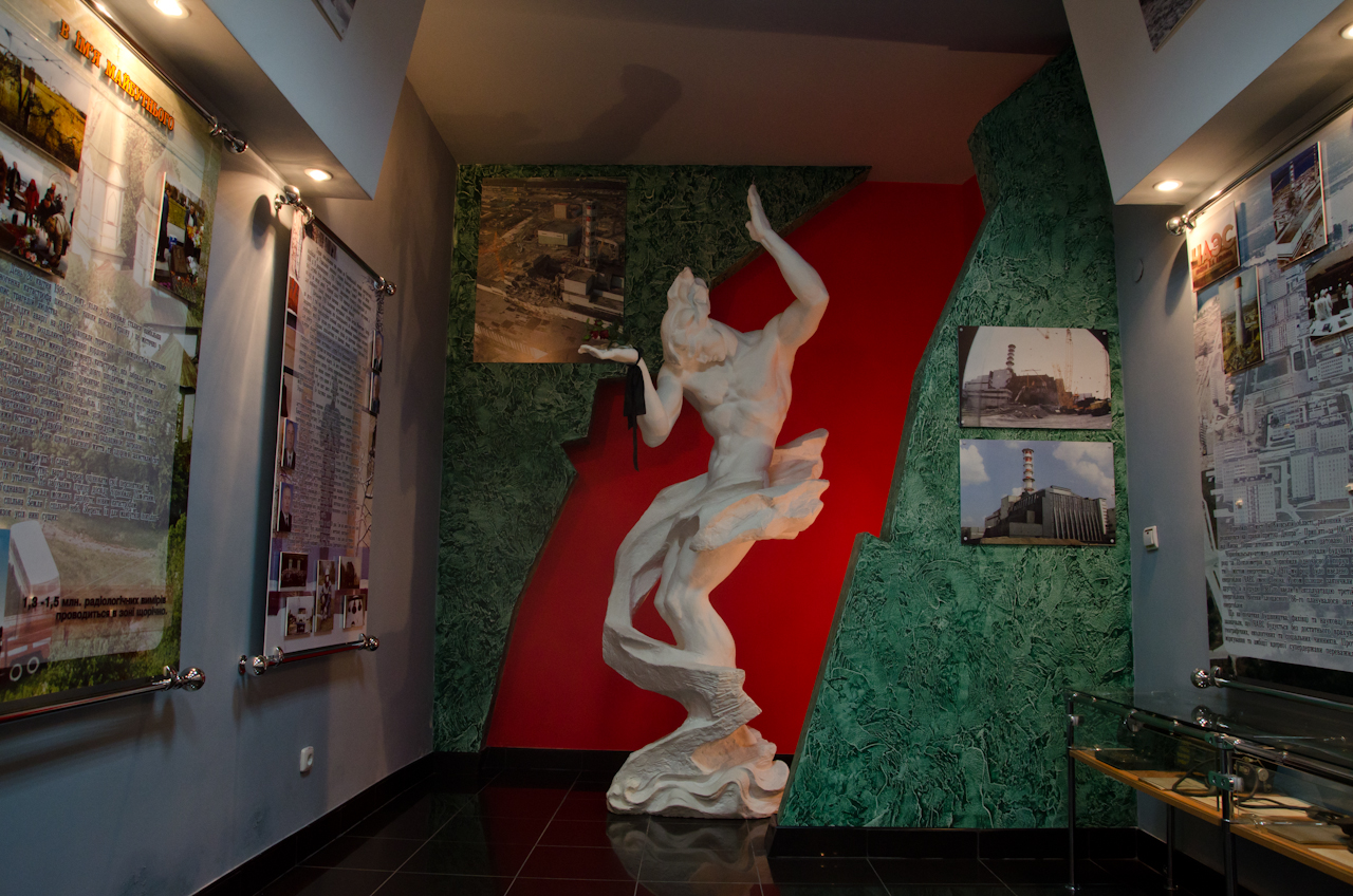Чорнобильська зала ілюструє наслідки катастрофи на АЕС, фотографії з місця трагедії, та деяке обладнання, що використовувалось ліквідаторами аварії.