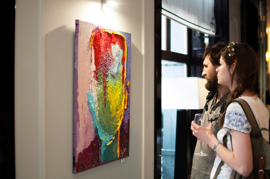 Найперше, що варто знати про цю експозицію — вона побудована на своєрідному експерименті та пошуку нового. Роботи молодої мисткині яскраві, сучасні, лаконічні, а емоції виражені через колір.