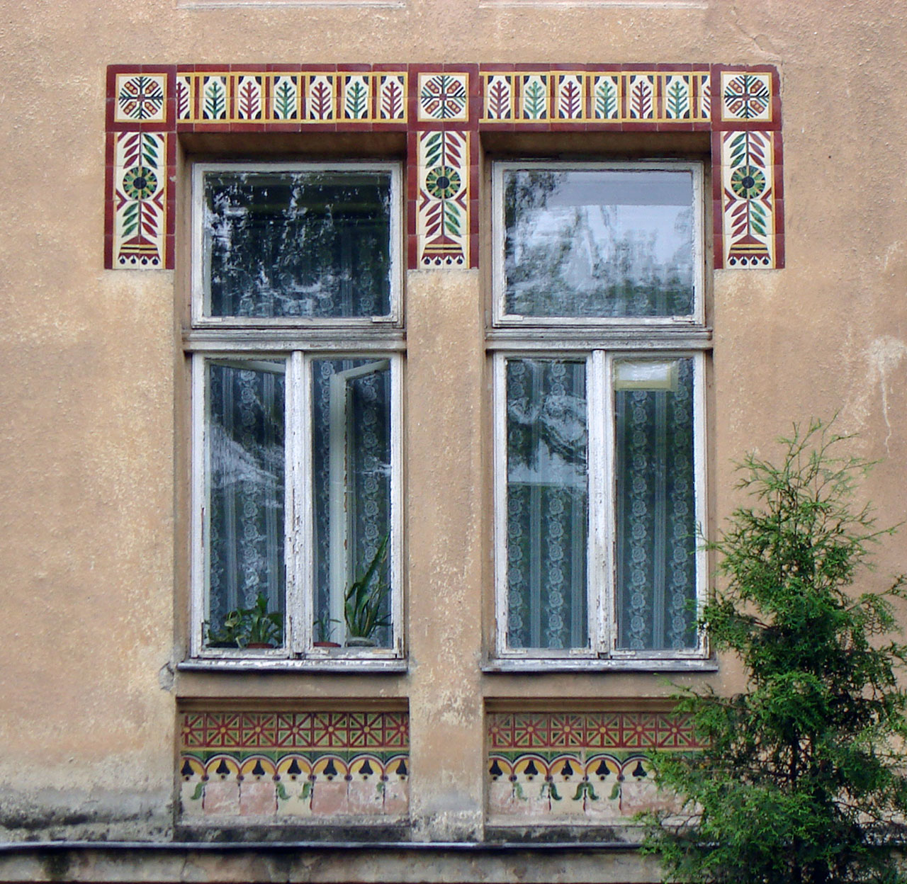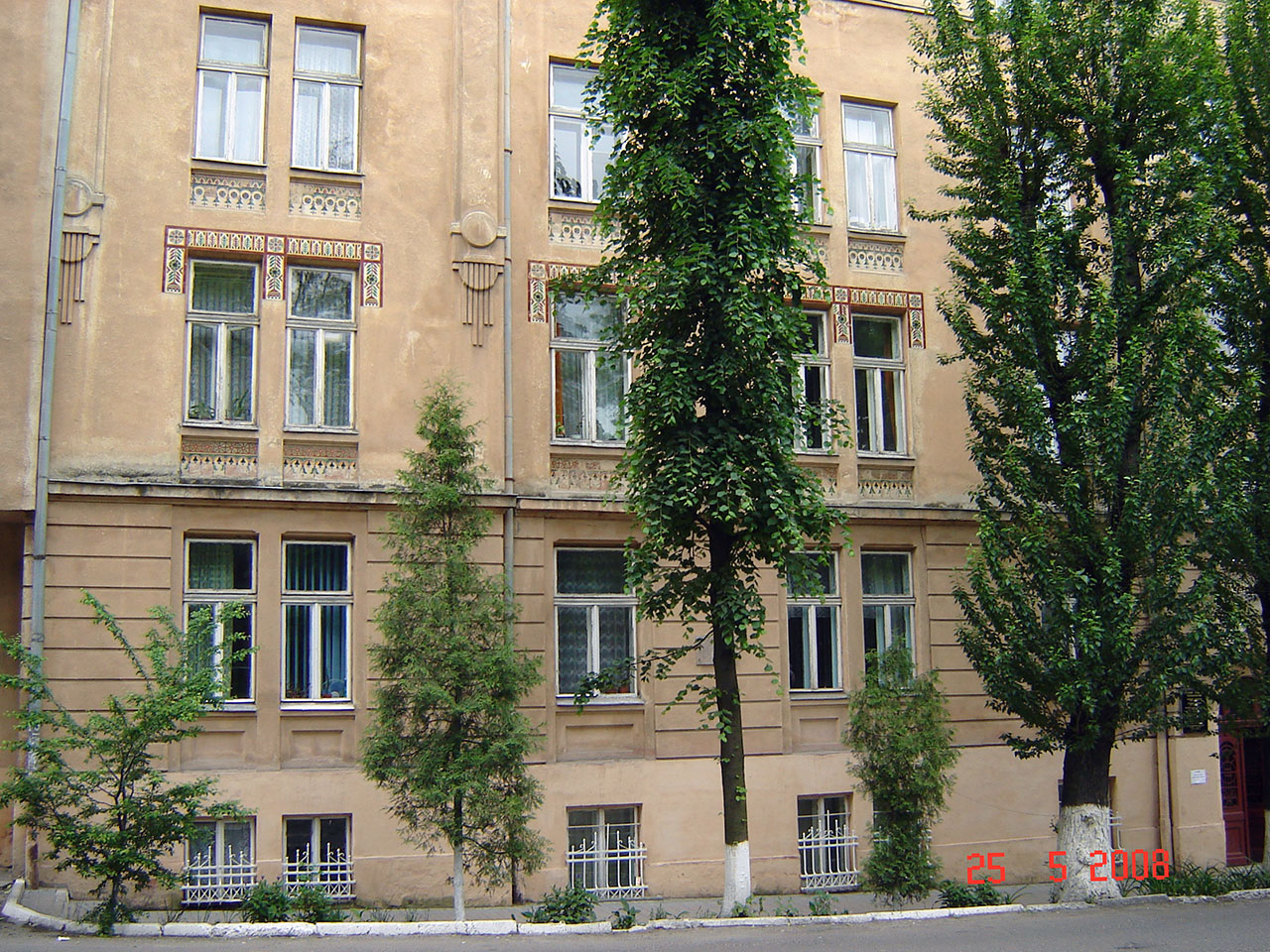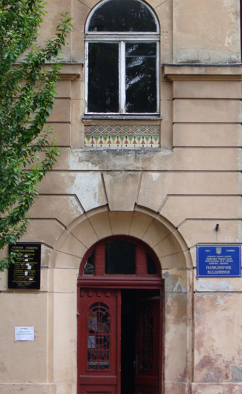 Керамічні фризи під вікнами й дахом, а також віконні облямування другого й третього поверхів було виконано за мотивами української вишивки з високоякісної багатобарвної кераміки (виробництва фабрики І. Левинського) брунатної, жовтої, зеленої, білої барв – характерної колористики мальовничого гуцульського народного мистецтва.