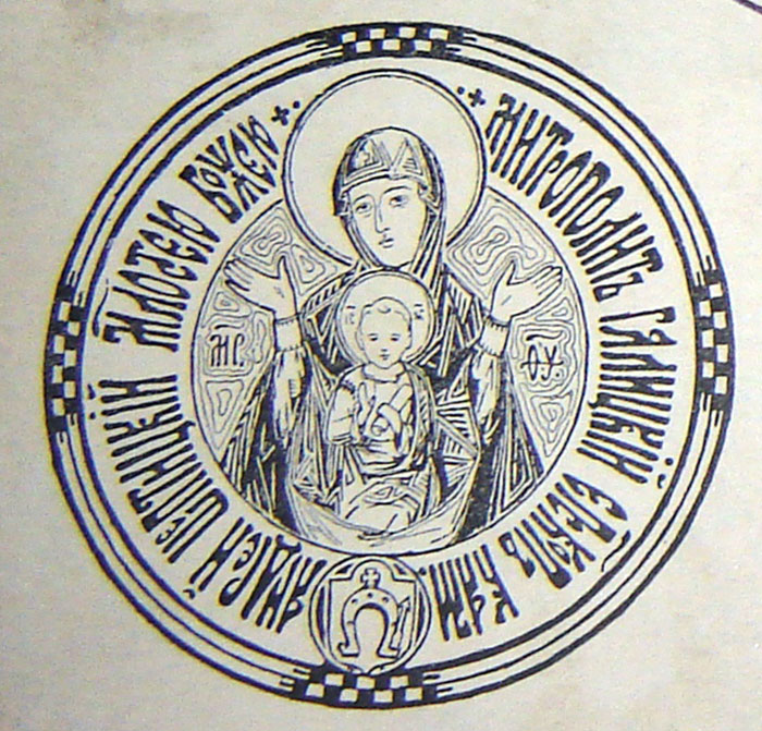 Притаманне М. Сосенкові також своєрідне поєднання пластично трактованого зображення святого з принципово збереженою площинністю загального декоративного рішення даного екслібриса. Наявний у цьому екслібрисі характер старої церковнослов’янської лексики та накреслення букв, зокрема словосполучення «в’ Львовҍ», цілком аналогічне, як у написах на Сосенковому екслібрисі Церковного музею у Львові.