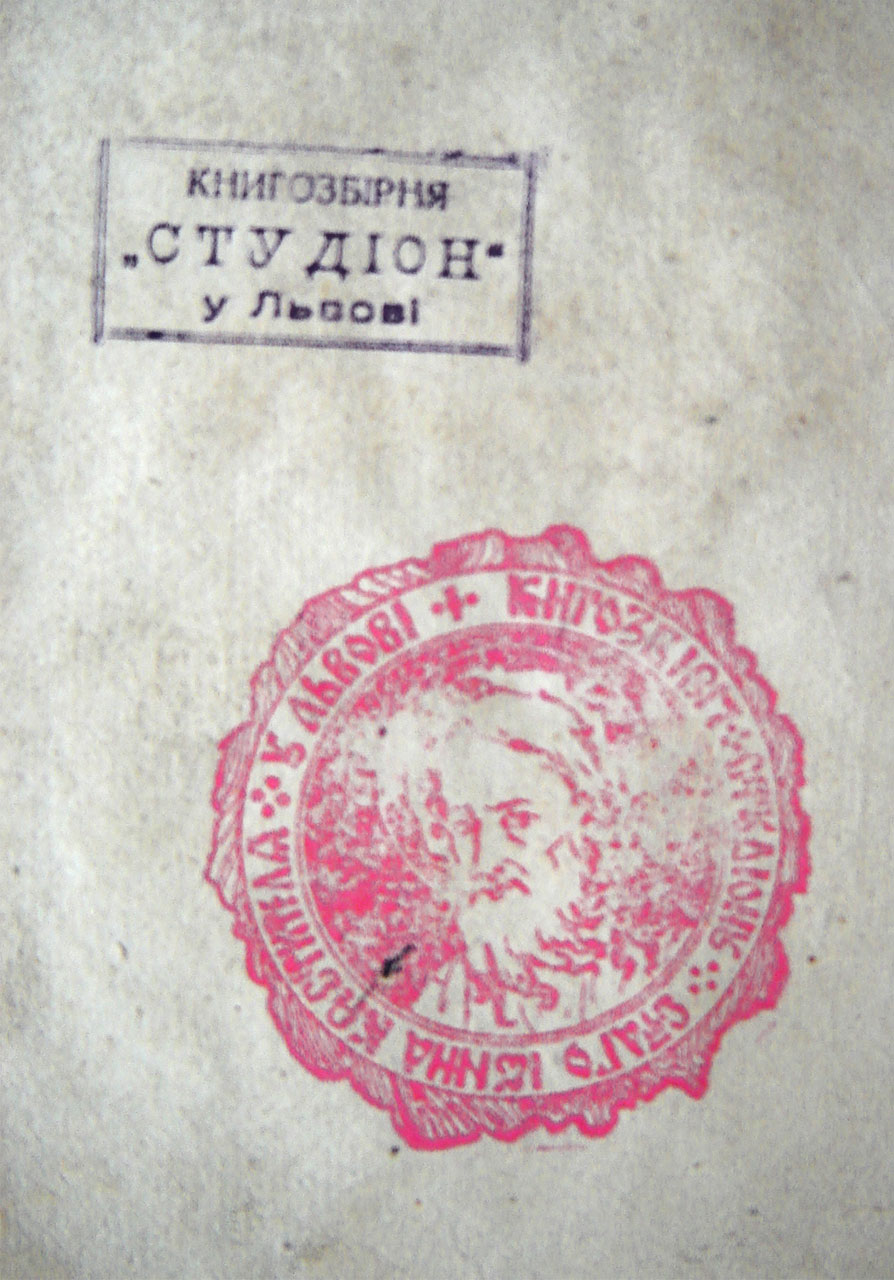 Інші, створені, очевидно, значно пізніше, бібліотечні знаки (штампи різної форми – овальний, квадратний, прямокутний; друкована наліпка), містили назву установи українською мовою без зазначення імені патрона. Ними маркували книжки „Студіону”, які були придбані в 1930-х роках і зберігалися вже в новому, спеціально призначеному для бібліотеки будинку, розміщеному поряд з давнім, під № 2б на вулиці Петра Скарги.