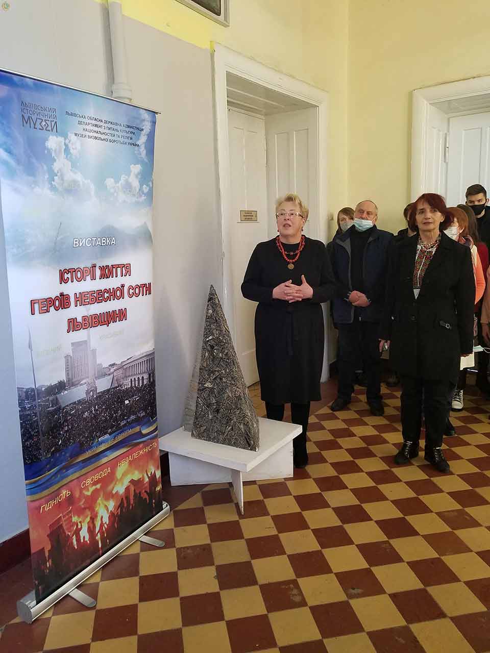 Автор та куратор виставки, старший науковий співробітник Львівського історичного музею Світлана Кочергіна провела екскурсію. Студенти і викладачі Львівського фахового коледжу декоративного і ужиткового мистецтва імені Івана Труша почули проникливі та живі історії про Героїв Небесної Сотні, які народилися, проживали чи навчалися на Львівщині.