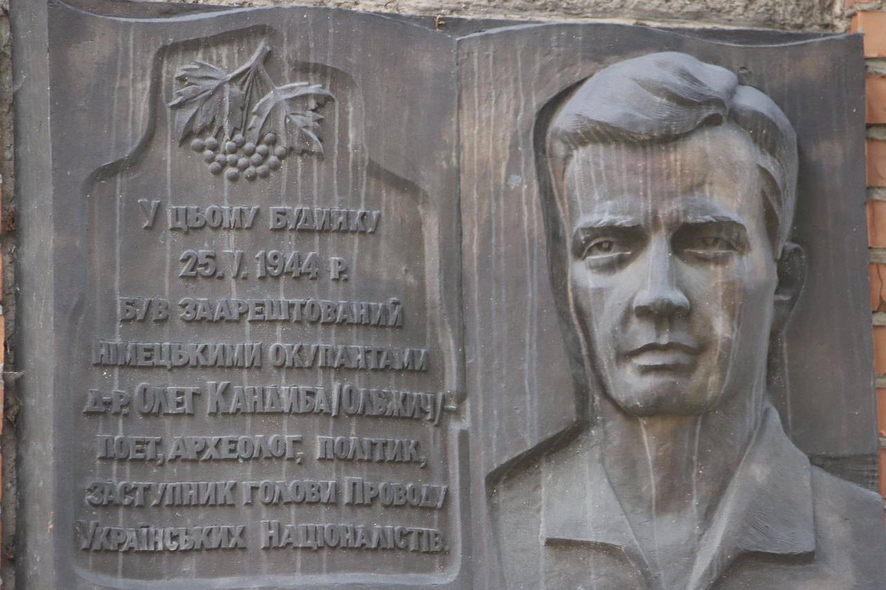 Олег Ольжич (справжнє ім’я – Олег Олександрович Кандиба), (8 (21) липня 1907, Житомир – 10 червня 1944, концтабір Заксенгаузен) – син українського поета Олександра Олеся. Очолював культурно-освітню референтуру Проводу Українських Націоналістів (ПУН) (1937) і Революційний Трибунал ОУН (1939 – 1941рр.). Заступник голови ПУН і голова ПУН на українських землях (з 05.1942), голова ПУН ОУН (01.1944 – 10.06.1944 рр.).