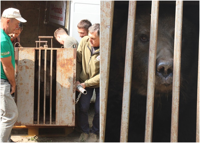 Ведмідь був покинутий у приватній оселі в Донецькій області, де наразі ведуться бойові дії.