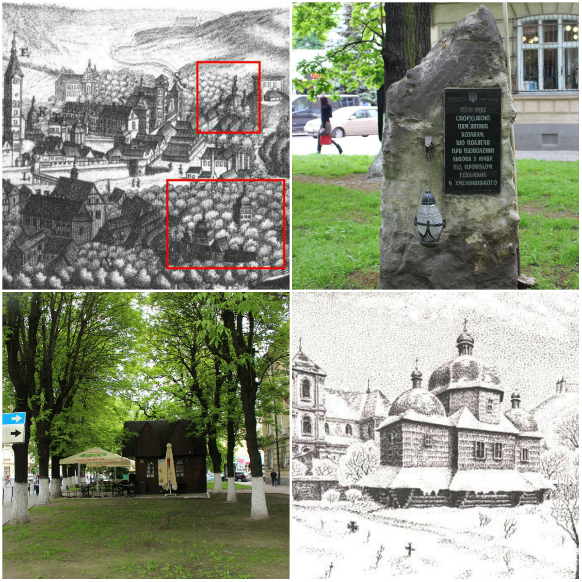Лише 1711 року було відбудовано нову дерев’яну церкву, яка простояла до 1800 року й була розібрана за розпорядженням австрійської влади. Ділянка перейшла у приватні руки – був тут заїзд Криницького, 1875 року купив його Крижановський. Новий власник почав ставити нову кам’яницю, й під час копання ровів під фундаменти натрапив на давній церковний цвинтар та велику могилу, в якій знайдено багато людських кістяків, кусень козацької шаблі, кілька наконечників стріл і списів…